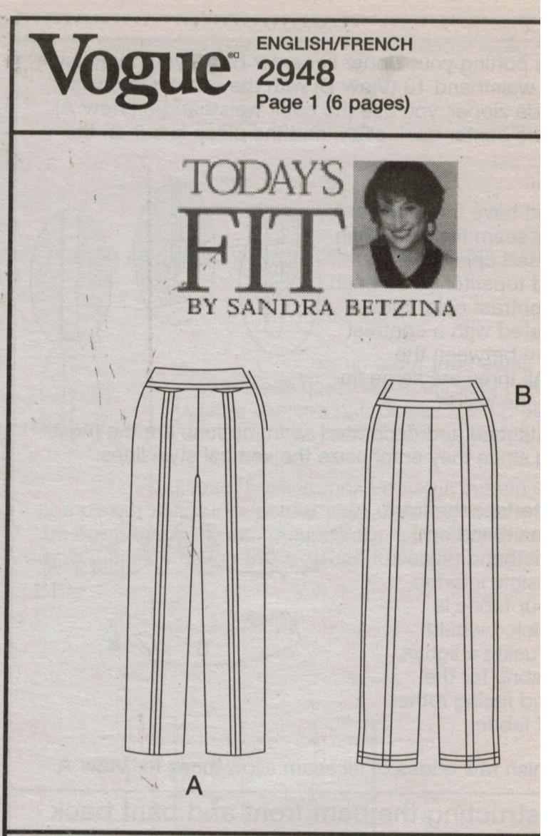 Vogue Pattern 2948 Today S Fit By Sandra Betzina Designer Pants Trousers Multi Size Sewing Pattern Heaven